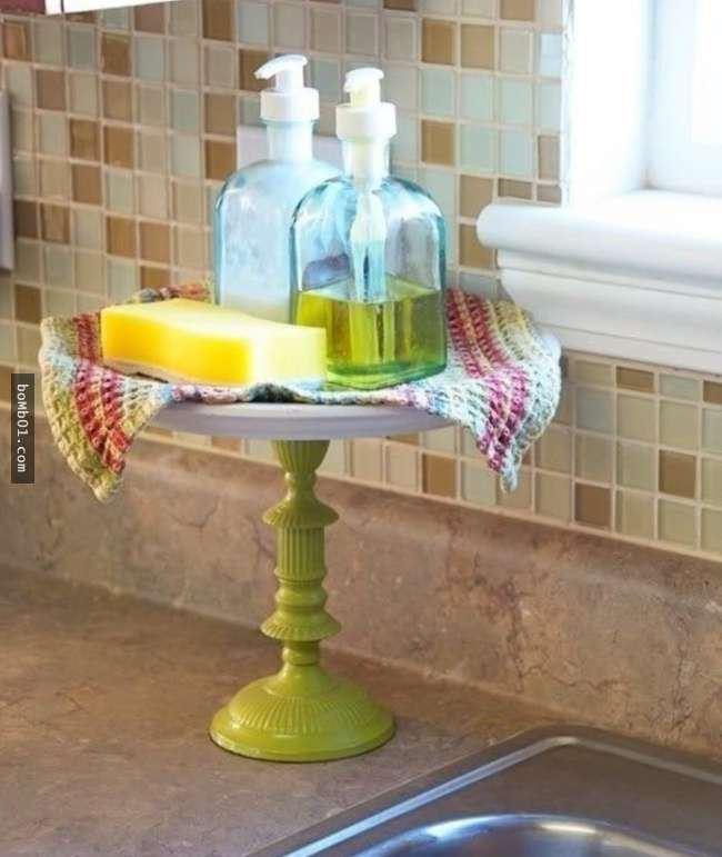 ▼8. 蛋糕台放到浴室中,擺放洗手液等物品,看起來會格外不一樣。