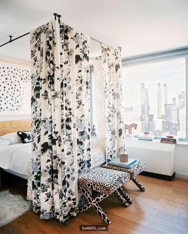 ▼14. 在天花板上放置支架掛上簾子,讓自己的睡眠更加珍貴。