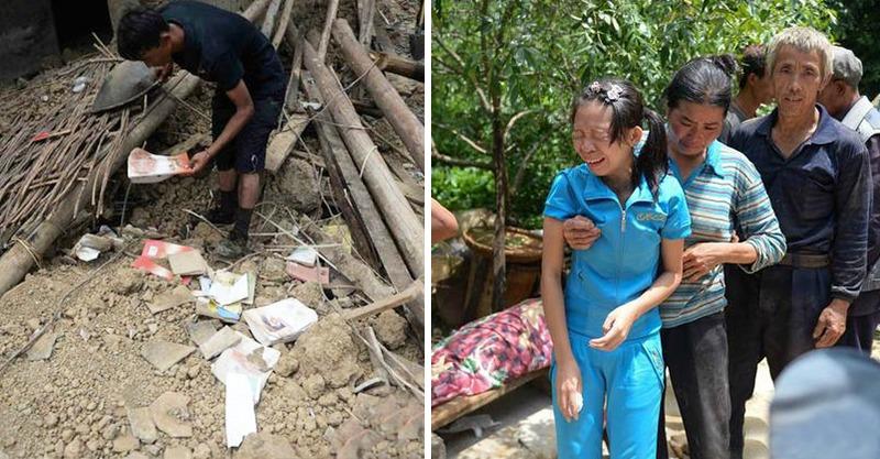 在發生地震的時候,小潔的爺爺奶奶正在田地裡農作,小潔一人獨自留在家裡,爺爺奶奶走運的躲過了一劫,但是自己的孫女卻沒有那麼走運。他們在厚厚的廢墟下找到小潔的遺體,家人們失聲痛哭。