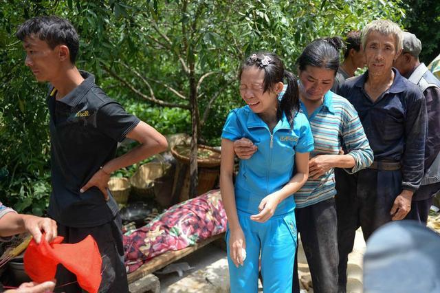 小潔的母親跪在地上哭的悲痛欲絕,家人們也實在不忍,便將她拉起來,而站起來後她依然目不轉睛的對著女孩的遺體哭泣。