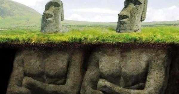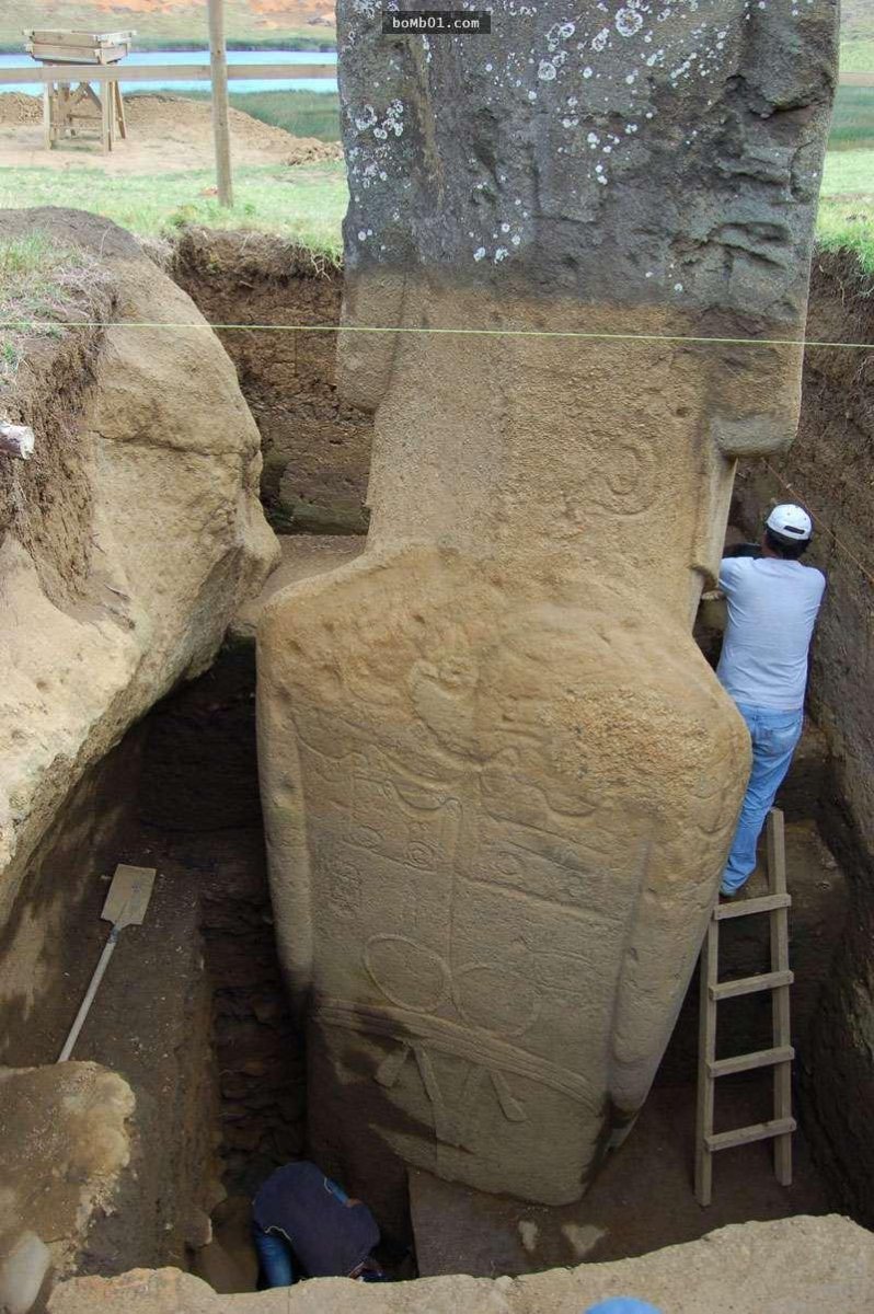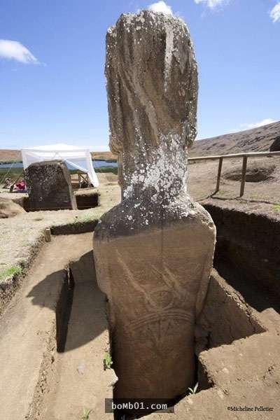 ▼考古學家挖掘摩艾石像的下半部,竟意外發現它還有身體!