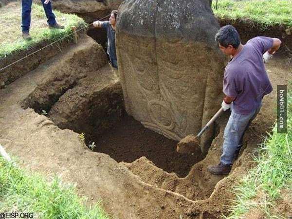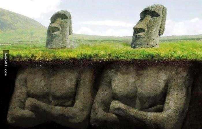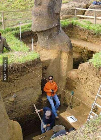 本來摩艾石像就已經夠神秘了,為了看有沒有新的發現,最近考古學家們終於決定開始挖掘這些石像,結果卻令他們都大感意外!因為這個龐大的摩艾石像下麵竟然還連接著身體!而且比它的頭大上好幾倍!