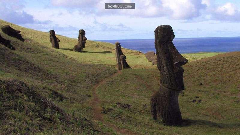 ▼在復活節島上目前有887座摩艾石像,都座落在不同的地方。