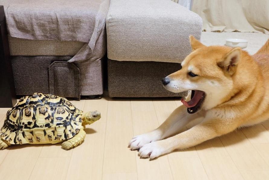 話說這隻柴柴「Senbee」認識了烏龜「Aosan」後,開始變得不太正常...怎麼說呢?阿柴開始出現各種「烏龜化行為」,學烏龜趴著、縮著、還給我深情對望真的是超可愛!