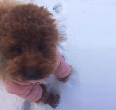 竟然是一隻紅貴賓,看到有人來了瞬間就跑了,只留這位網友呆呆的站在那裡!現在的人喜歡給狗狗都穿衣服,給人一個錯覺以為是小孩子,好大的誤會!