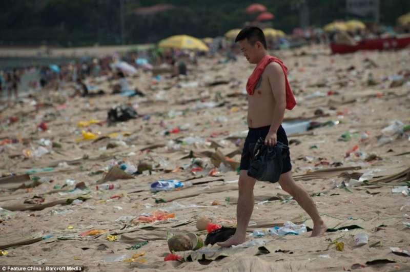 中國夏天的龍舟節上,大梅沙海濱公園的遊客都會注意到眼前48萬遊客在三天的節日中留下的大約362噸的垃圾。這個畫麵讓大家都誤以為是一個垃圾場而非一個海灘。