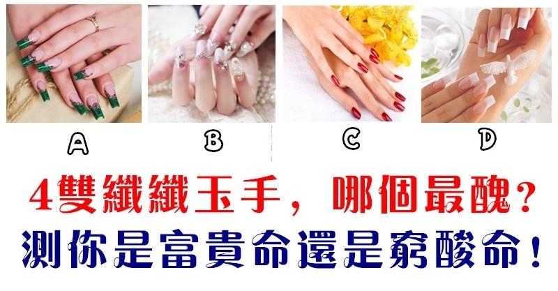 心理測試:4雙纖纖玉手,哪個最醜?測你是富貴命還是窮酸命!