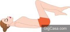1.雙腿腳踝交叉、同時彎曲膝蓋,採仰臥姿勢,雙手置於臀部下麵、彎曲膝蓋、腳踝交叉。