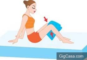 雙膝夾住枕頭,合力向內擠壓。坐在床上,將枕頭對折後,夾在雙膝間,用力擠壓數十次。