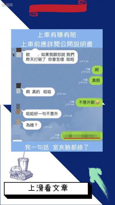 所以說出門在外真的不要亂來呀~網友看完後留言:「太鮮艷華麗又主動的女孩可能有毒喔」「想炫耀反而哭哭了~笑死」「讓我想到一句話...這鮑魚有毒!!!!」「免費的最貴啊~」