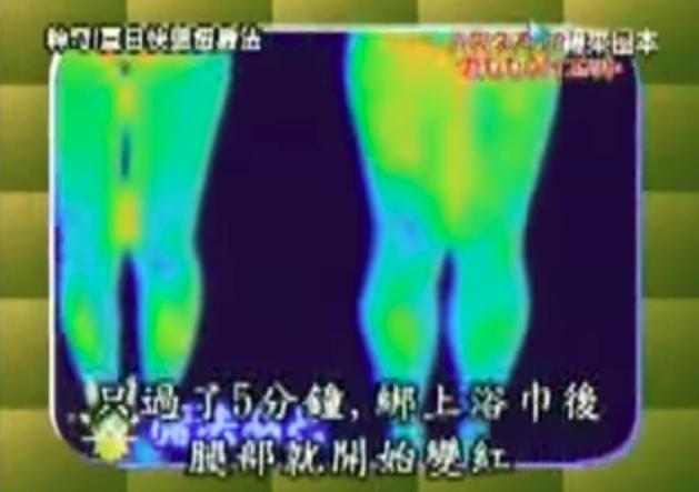 用遠紅外線觀察,發現原本藍色的大腿,漸漸轉成紅色,表示大腿溫度開始上升!