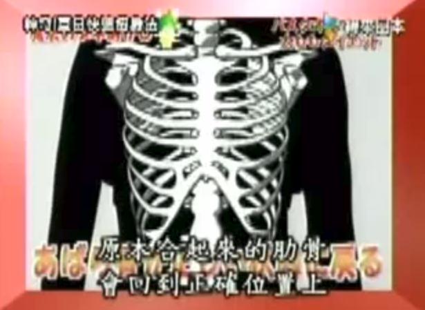 原理是什麼呢?由於浴巾綁住肩膀,使原本合起來的肋骨回到正確的位置上。