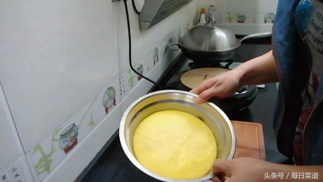 4、把和好的麵糰放到溫暖的地方發酵,發酵至麵糰有1.5—2倍大,扒開麵糰有蜂窩狀即可。