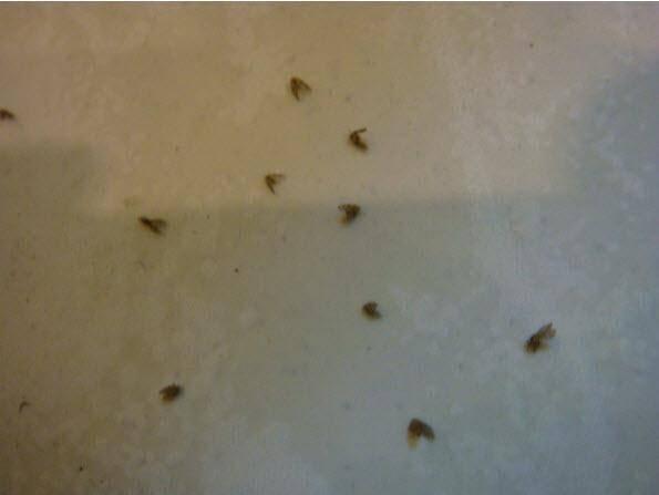 棲息在白色油漆或磁磚牆壁上的蛾蚋,會影響視覺清爽及室內清潔。