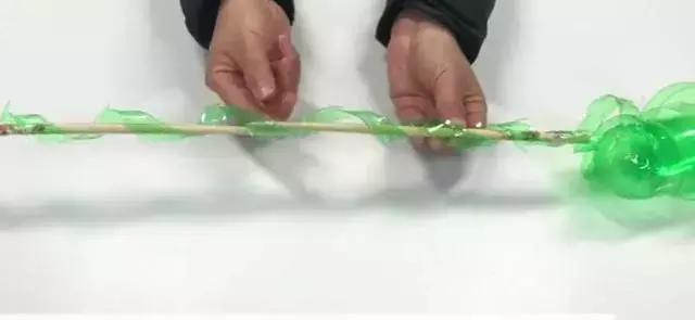 5、找一根長一點的木棍,把剪好的塑膠條套上去,隔幾釐米用膠帶固定一下。