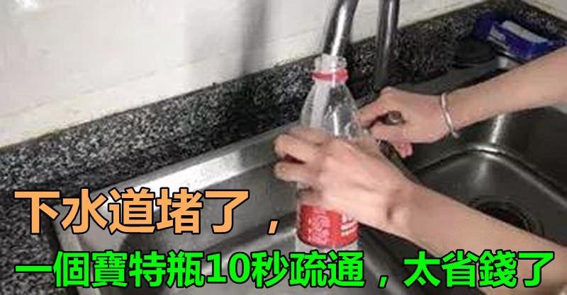 用塑膠瓶通下水道利用的是水壓的作用,巨大的水壓把阻塞的東西瞬間推走,下水道就乾乾淨淨啦!