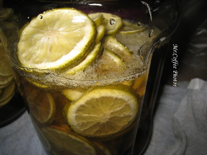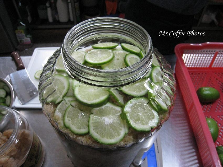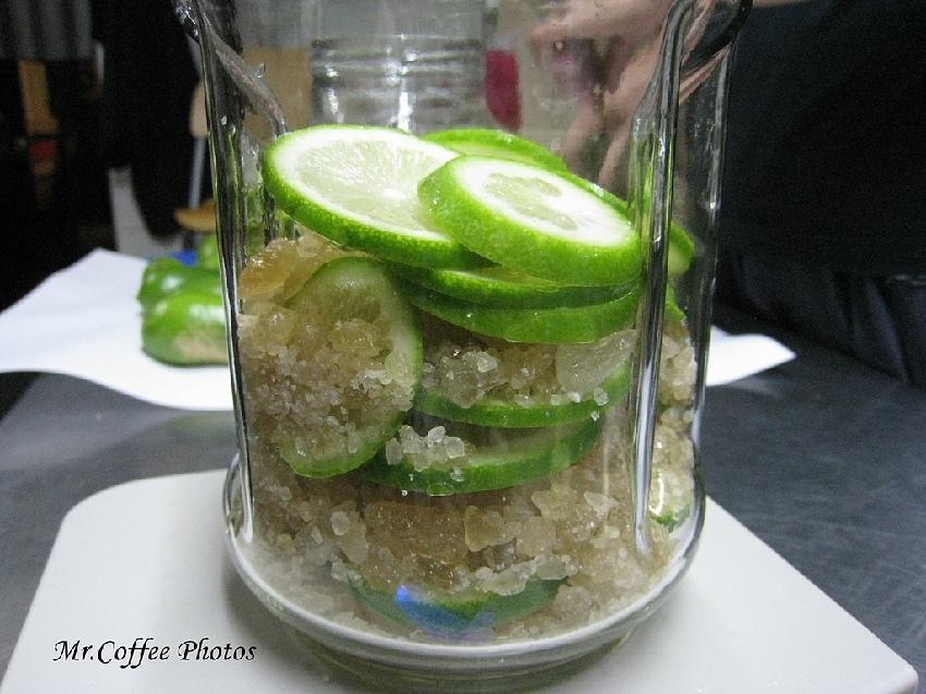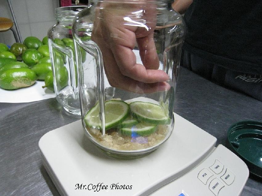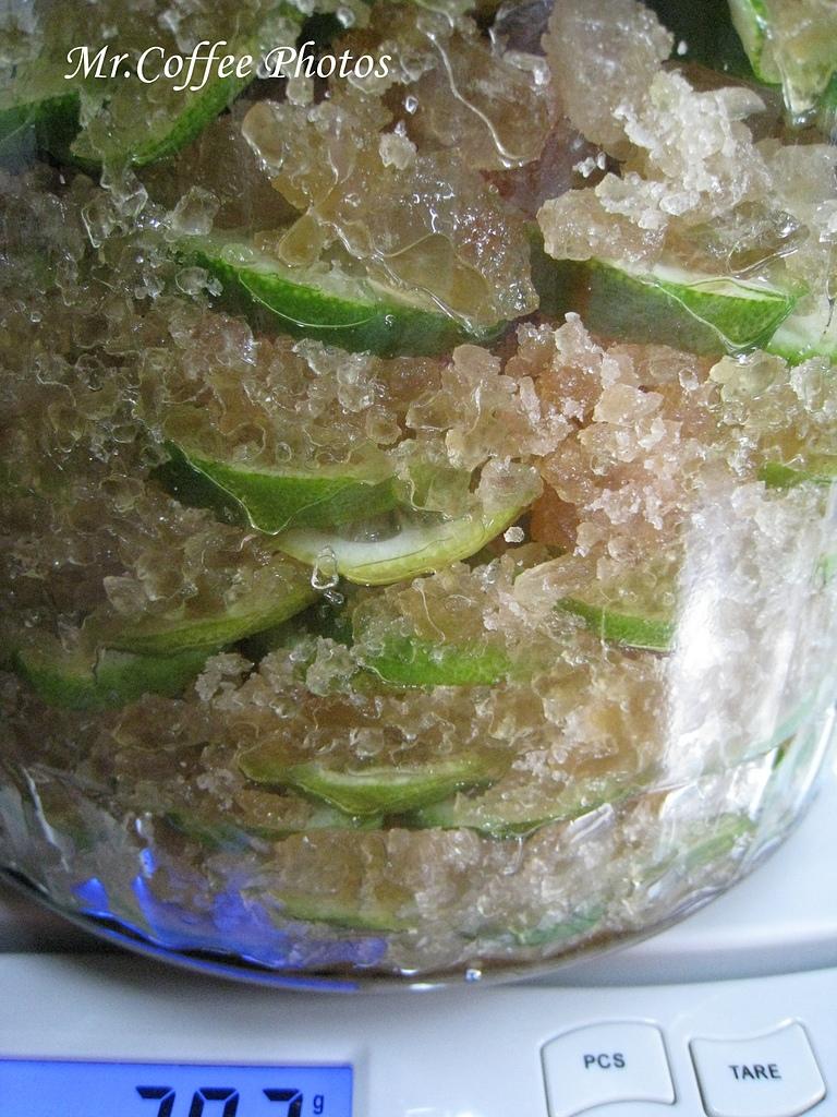 像這樣層層堆疊,完全不用加任何一滴水,靠檸檬滲出來的水份就足夠融化冰糖