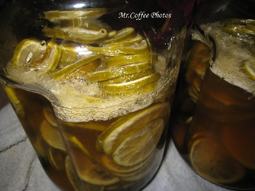 靜置一天後檸檬軟化了,糖也融化一大半
