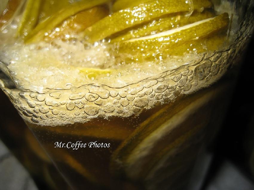 檸檬片也可以吃,中間纖維的部份脆脆的,外皮有點苦澀,泡水後將糖份釋出比較不會這麼甜