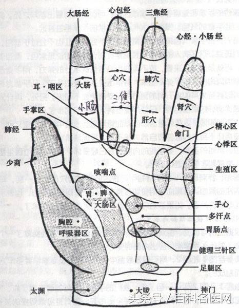 【選穴】雙勞宮、肝經、腎經、胃腸點、神門、太淵、合穀、陽池、陽溪。