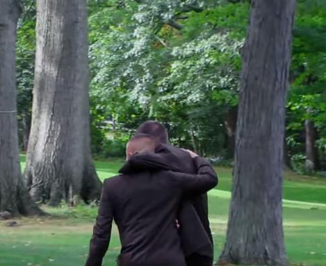 影片的最後,生父和繼父在完成任務後,互相搭著肩步出觀眾席。