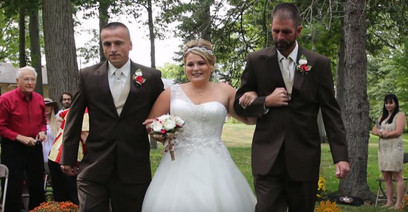 到了結婚的那一天,她卻不得不依循傳統,讓她的親生父親布萊克班(Todd Blackburn)牽著她走向紅毯另一端。