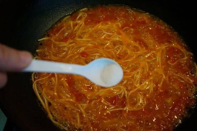 8. 麵條煮到8分熟時,可以撒少許鹽