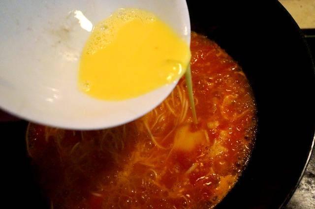 酸溜溜的蕃茄雞湯麵,真是百吃不厭! 特別是最後再打上雞蛋花,不但顏色漂亮惹人食欲,在營養上也補充了蛋白質。 什麼飯菜都有個吃厭吃膩的時候,但唯獨這蕃茄雞蛋雞湯麵,什麼時候都是最愛! 想想原因,主要是因為這道湯麵快手、開胃。 特別是在這大熱天的,都懶得開火,這10分鐘的湯麵足可以讓人少在廚房待著,也能吃得滋潤、舒坦! 香雪麵條,筋道、滑爽! 吸足了蕃茄的湯汁,越發有滋味!
