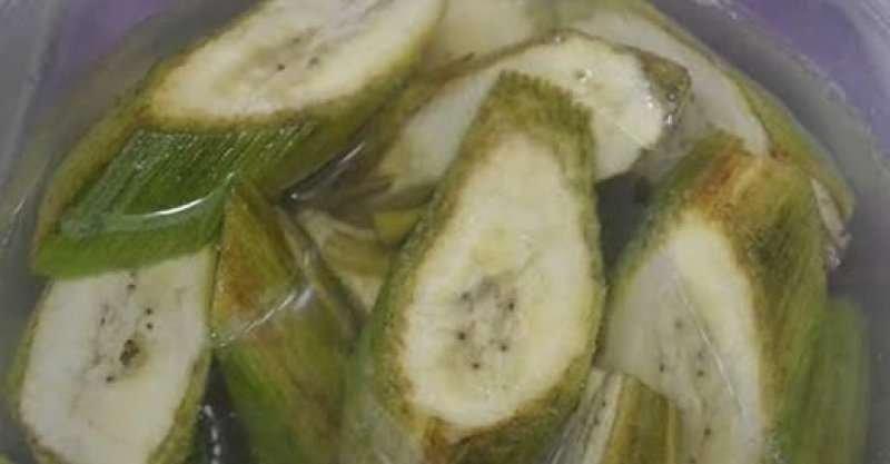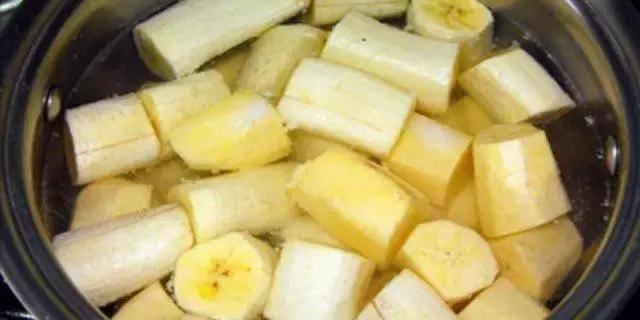 1.水煮沸,香蕉洗凈,剝皮,切塊。