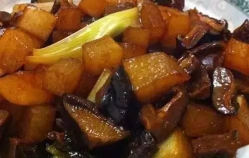 今天送給大家一道不用油的紅燒菜:紅燒香菇白蘿蔔。