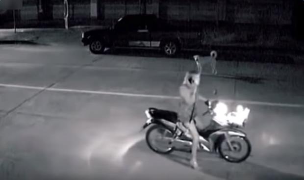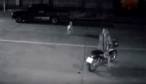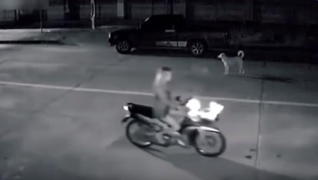 沒想到此時從左邊有一名男子正騎著一輛機車駛過來,下一刻竟發生超恐怖的事情……連旁邊的狗都驚呆了!!