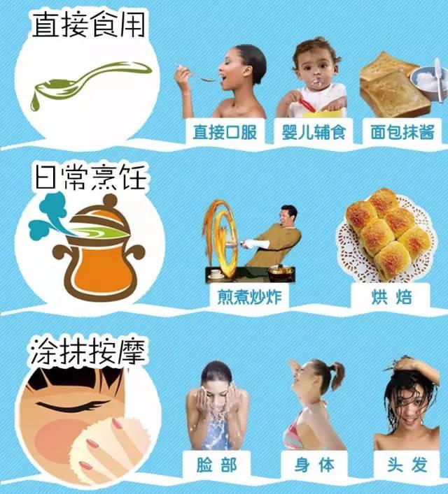 洗完頭髮適當塗抹椰子油在發尾並充分讓它吸收,是天然的發膜;另外曬後皮膚髮紅髮癢,擦上它也能起到鎮靜肌膚的作用。