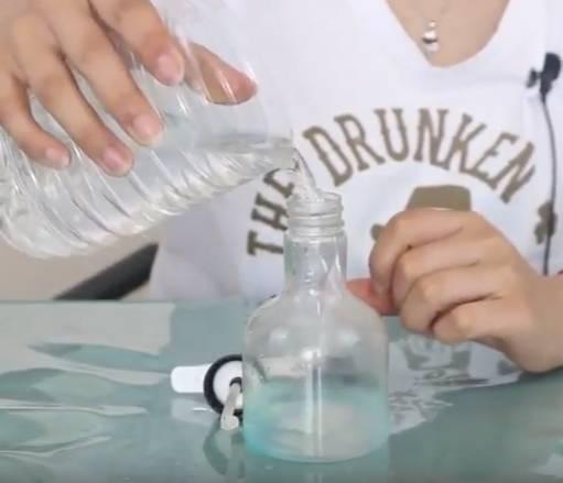 1、先打開一個噴壺,往噴壺裡加入2瓶蓋的白醋。
