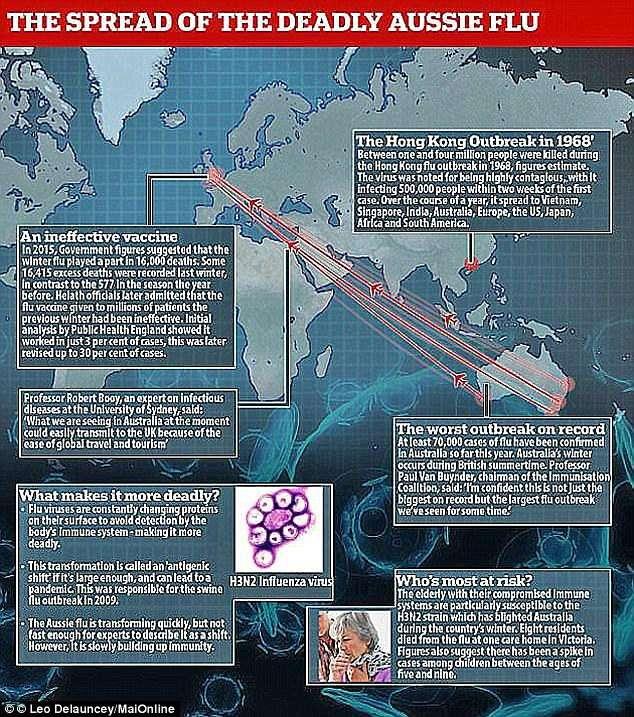 去年冬季,世界各地頻頻被流感病毒襲擊,而現在一種更可怕的「新澳洲流感」可能即將爆發,專家警告說,人類幾乎對這種致命流感病毒的傳播無能為力,該病毒的傳染和致死能力及其強大,在短短200天內就能奪走3300萬人的生命。