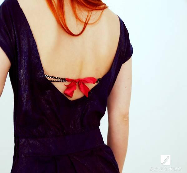 對於喜歡穿裹胸裙子的人來說可以這樣做,將肩帶拆下來交叉繞一圈,再穿上裙子,肩帶就妥妥的被包裹在裙子裡啦~