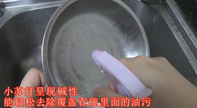 這時我們將它噴灑在碗裡,然後用抹布擦拭一下,覆蓋在碗裡麵的油汙一下就被擦掉了,