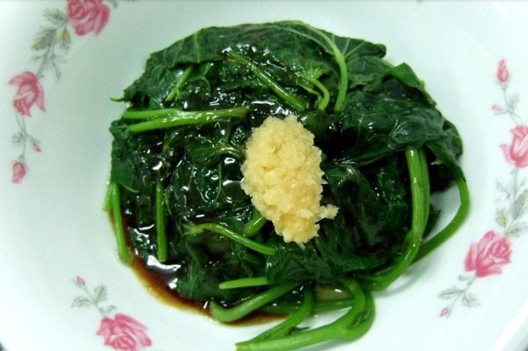 把地瓜葉擇洗乾淨後,放開水裏焯一下,撈出擠乾,用蒜泥、花椒油涼拌,下降吃起來新鮮爽口又開胃,是一道很不錯的小涼菜。
