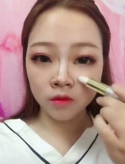 接著開始修容,幫鼻子打上陰影,竟然... 連鼻孔也打上了!接著在鼻樑、臉頰畫起打亮,讓整個人五官變得立體。