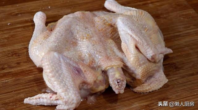 1.做電飯鍋焗雞,需要選擇個頭小點兒的嫩雞(選用的是三黃雞)。