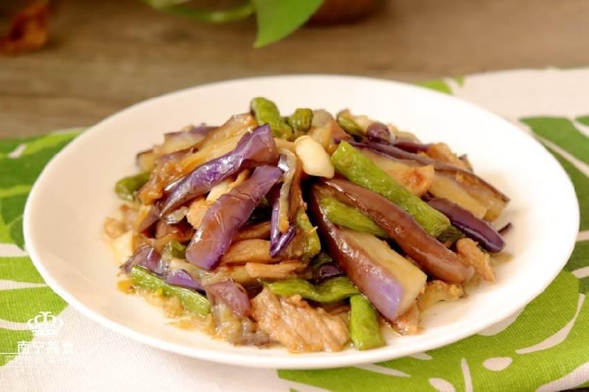 茄子1根、四季豆10根、瘦肉300克、蒜米3粒、生抽1湯匙