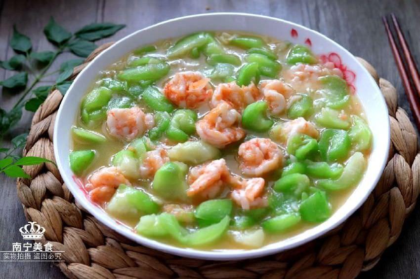 鮮蝦300g、絲瓜1根、蒜米3粒、料酒一湯匙、食鹽一湯匙
