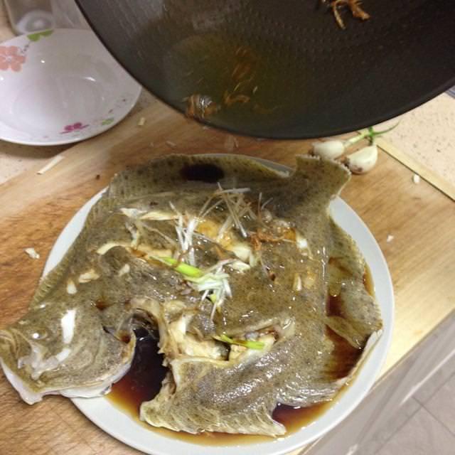 5.把鍋洗乾凈,倒入少許油燒開,然後淋上魚表麵上就可以了!(這個時候你會聽到滋滋的聲音,如果沒有就證明油沒燒開)