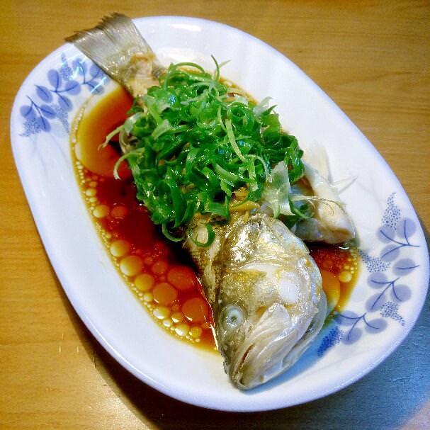 多寶魚(鱸魚、海鱸、桂花魚等)1條;薑適量;蔥花適量;食用油適量;生抽適量;料酒適量