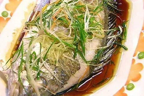 3.蒸好的魚取出後鋪上蔥絲、薑絲,淋上蒸魚豉油