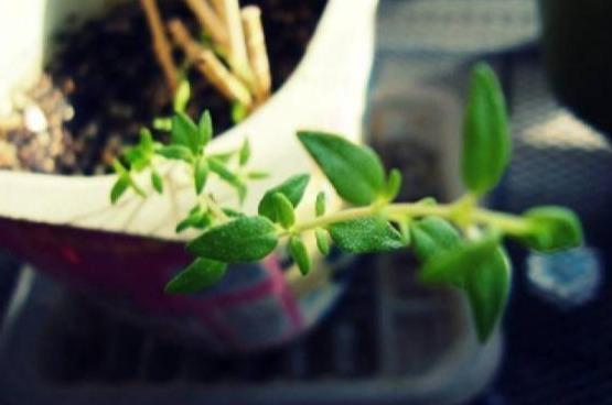 接著要介紹的香草植物,就是百裡香!百裡香有著翠綠的葉片,在烤肉、烤魚、煮菜、蒸蛋時,都可摘片葉子當調料,飯菜更香的說!養護百裡香時,百裡香喜歡曬太陽,可放在光線明亮的地方養護。