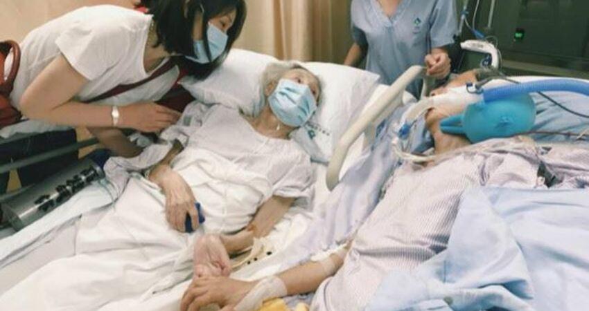 “我媽見到我爸,一直喊著’老頭子,老頭子’,其他的話媽媽也說不太出來,她的身體還是很虛弱,連翻身都翻不了。醫生一直在密切觀察母親的身體狀況,怕她太激動導致病情加重。每個人都小心翼翼。”一直陪在母親身邊的高女士說,“我爸爸一直是昏迷的,他其實不知道我媽媽來了。最後我媽媽握了一下爸爸的手。他們見麵不到十分鐘,最後還是決定盡快送我媽媽離開ICU,就是擔心她再待下去太激動,病情加重。當時我心裡清楚,可能這是父母兩人見的最後一麵了。”