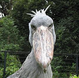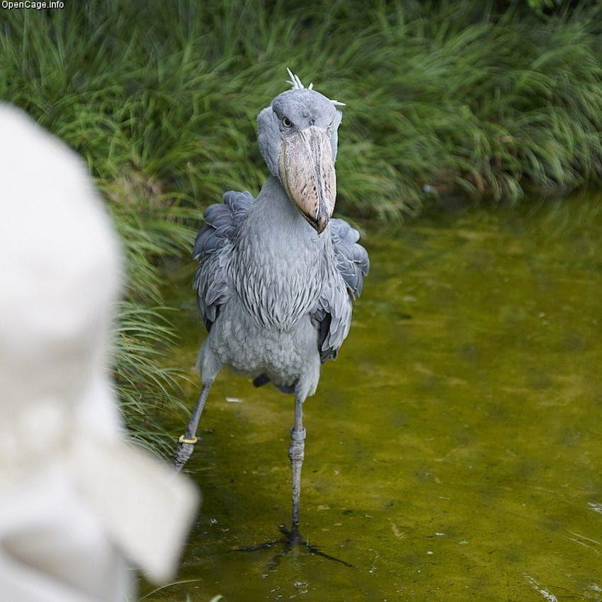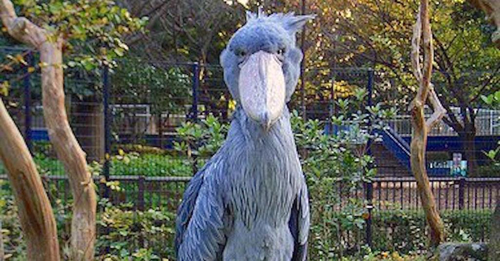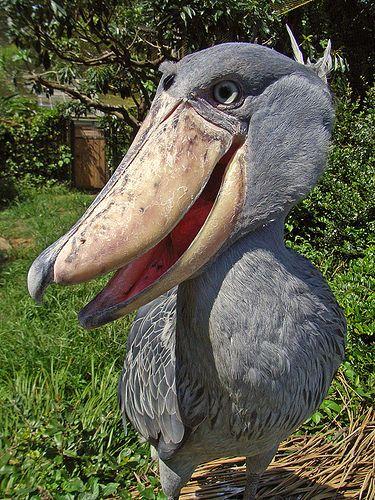 這種大鳥叫做鯨頭鸛 (音同冠),牠的超大嘴巴與灰藍色羽毛就是牠的特點,不要看牠外表萌萌的,兇起來可是要人命,平常牠們以魚類為主食,曾經有大鳥誤把雜草當飼料,一不小心咬下去當場吐出來,被遊客拍下來爆紅,因此才越來越多人知道這種鳥類,直呼超級像史前巨獸阿!而牠的叫聲更是可怕,是一種很奇怪的聲音....許多人拍攝到一半還會默默的倒退3步,怕牠會突然飛過來。