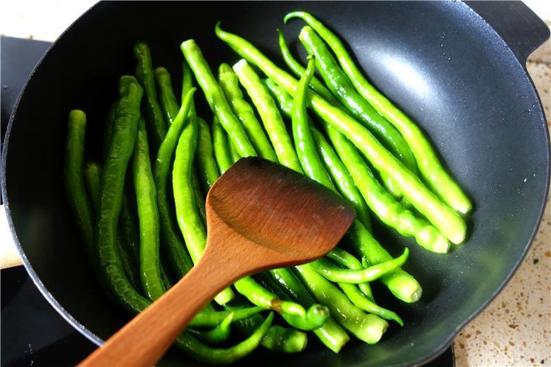 食材:青椒 一把,食用油 適量,鹽 適量。