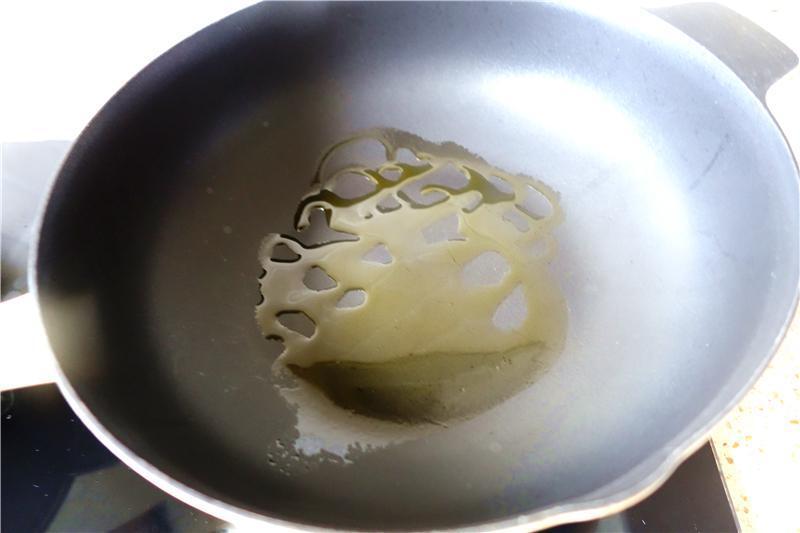 2.鍋裡放入少許油,(這油要比平時炒菜少很多,或者直接用刷子刷上一層薄油也行)