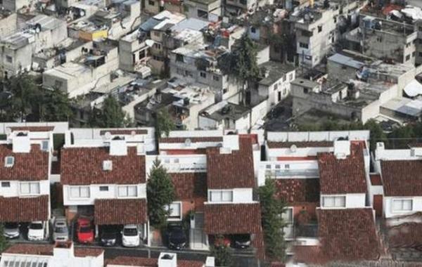 紐約街頭,流浪者垃圾堆裡翻找食物,旁邊走過一位打扮時尚的上班族。